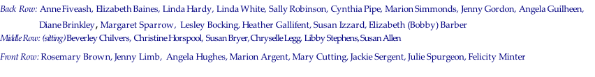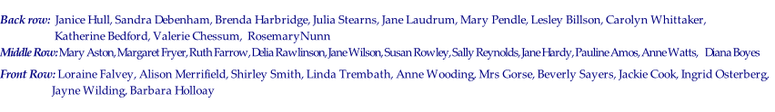 Back row: Eileen, Jean, Dianne P, Paula, Sue, Linda, Margaret F, Pam, Mrs Reynolds. Margaret P, Janet N